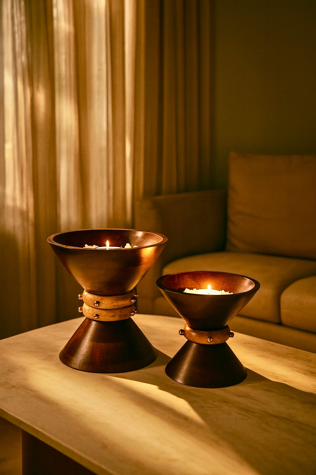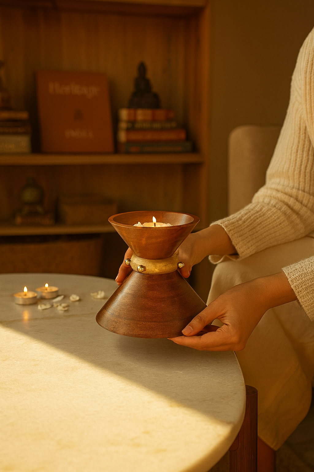 As the festive season approaches, Damru becomes more than just a vase—it transforms into a statement of artistry and versatility. Handcrafted in rich wood and embellished with delicate brass details, its unique form draws inspiration from the traditional damru, embodying rhythm, balance, and harmony.