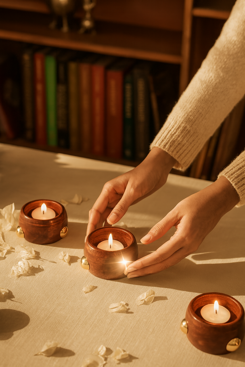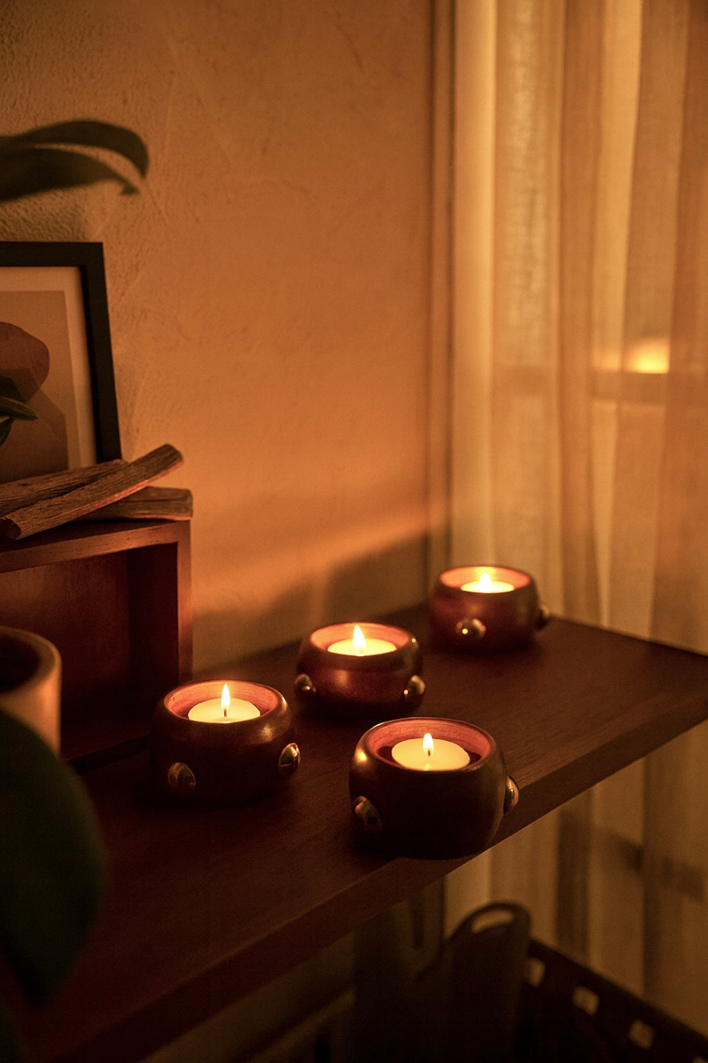 As the festive season draws near, Prakāśa Patra becomes more than just a tealight holder—it transforms into a vessel of radiance and warmth. Handcrafted in wood and adorned with delicate brass details, this timeless bowl glows with elegance when lit, creating an aura of serenity and celebration. Perfect for Diwali evenings, festive tablescapes, or as a thoughtful gift, Prakāśa Patra adds a touch of tradition reimagined with modern sophistication—an illuminating centerpiece for every joyous gathering.